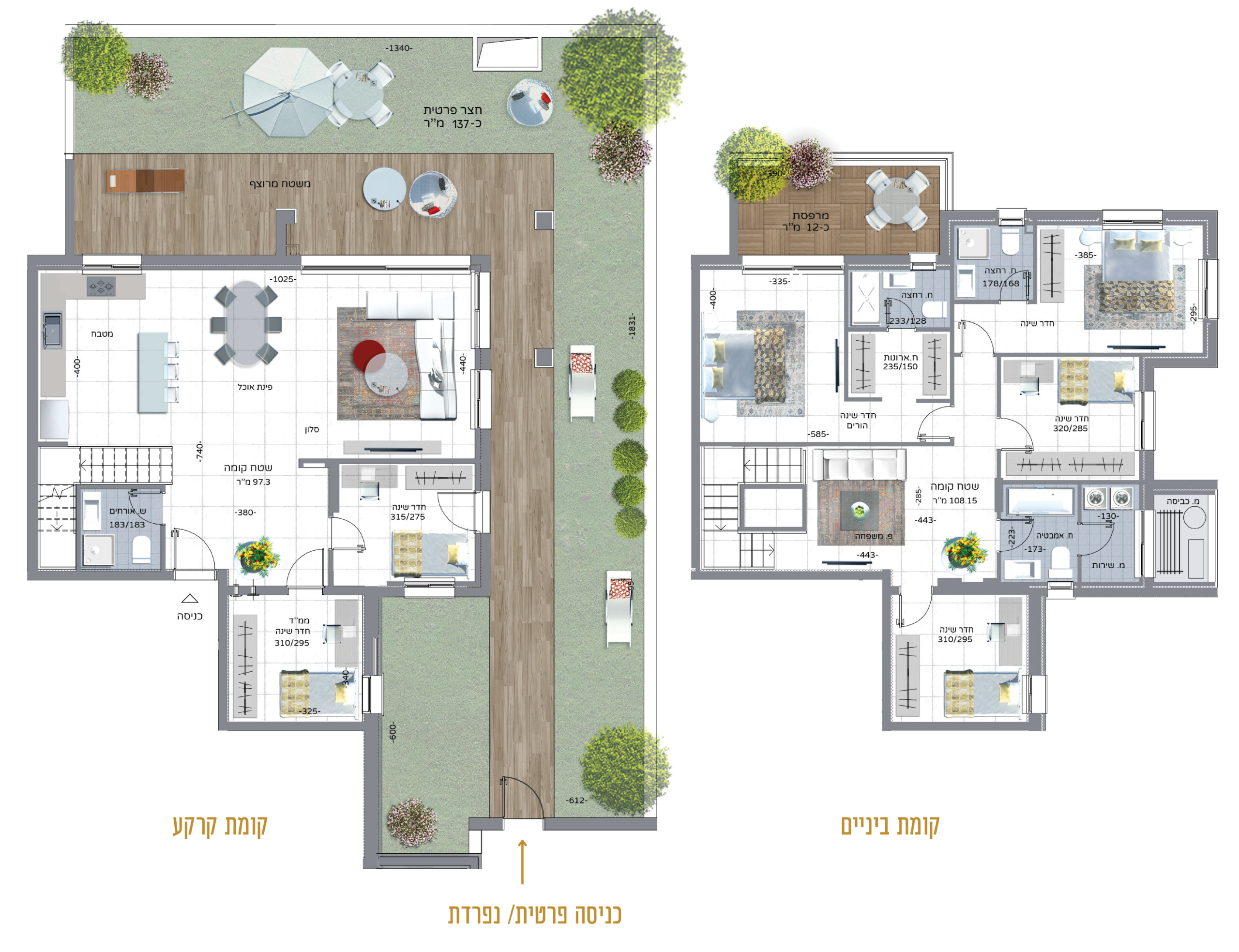 *המידות המופיעות בהדמיות הינן מידות לפני טיח ו/או ציפוי אחר ואינן סופיות.